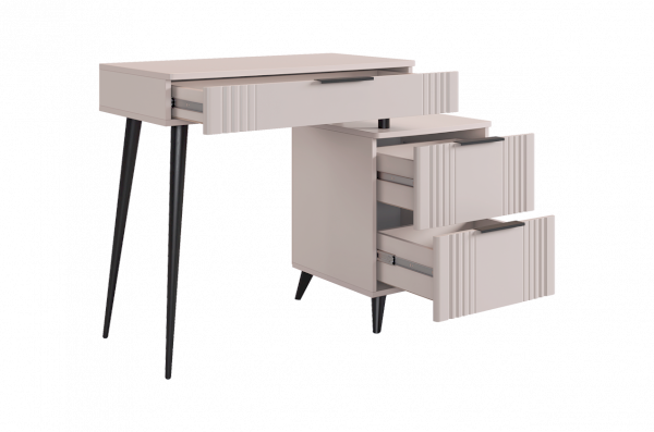 Представляем вам элегантный и функциональный туалетный столик «Катрин»! Этот предмет мебели станет стильным дополнением к вашей спальне и предоставит удобное место для хранения вещей, а также может использоваться как письменный стол.