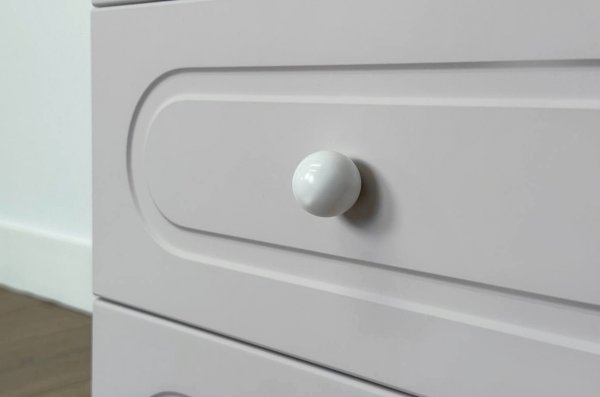 Корпус выполнен из ЛДСП толщиной 16 мм, фасад изготовлен из МДФ в плёнке ПВХ и декорирован фрезеровкой, подчёркивающей стиль серии Милана. Оригинальные круглые ручки и опоры дополняют дизайн, придавая шкафу аккуратный и современный внешний вид.