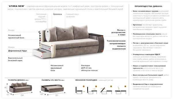 Диван Атика (Империал) продается в интернет-магазине mebelin-podolsk.ru по цене 69 362 руб. Есть доставка по Подольску и Московской области. Возможность подъема на этаж и сборки уточняйте у менеджера по телефону 8(800)505-27-11.