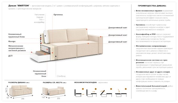 Диван Милтон (Империал) продается в интернет-магазине mebelin-podolsk.ru по цене 60 770 руб. Есть доставка по Подольску и Московской области. Возможность подъема на этаж и сборки уточняйте у менеджера по телефону 8(800)505-27-11.
